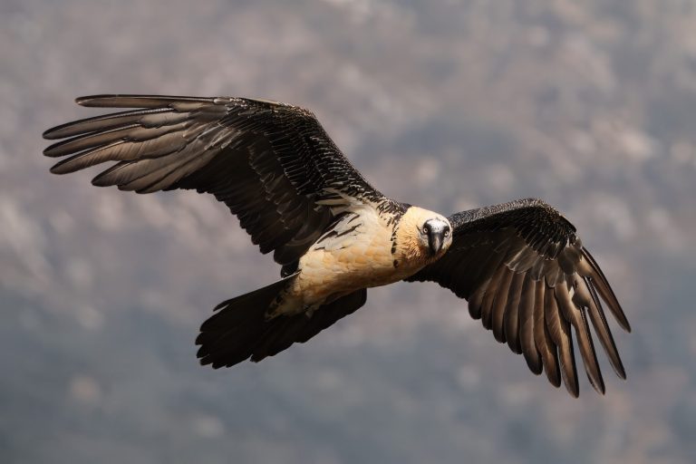 De lammergier is de enige vogel ter wereld die zich vrijwel volledig specialiseert in botten. Het spectaculaire laten vallen van botten op rotsen maakt deze soort uniek én bijzonder indrukwekkend om te observeren en te fotograferen.